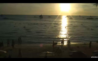 水中カメラに保存されていたフィリピン・ボラカイ島の海岸の画像。左下の看板に小さく書かれたダイビングショップのHPアドレスが手がかりになった